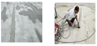 ⑤室外需要在初凝时切缝、边角;室内则只需要打磨边角